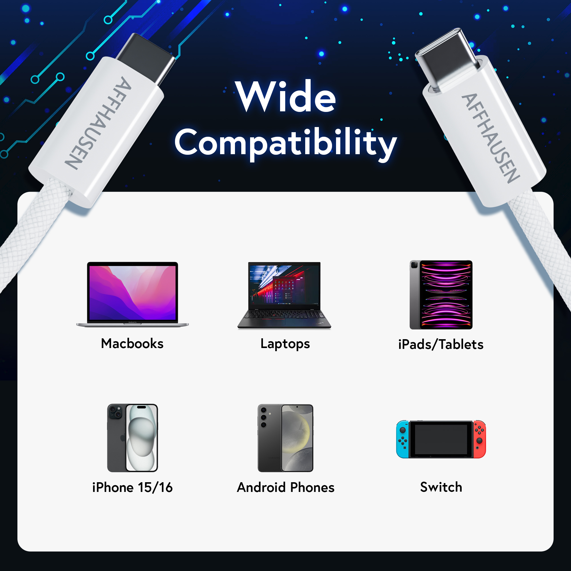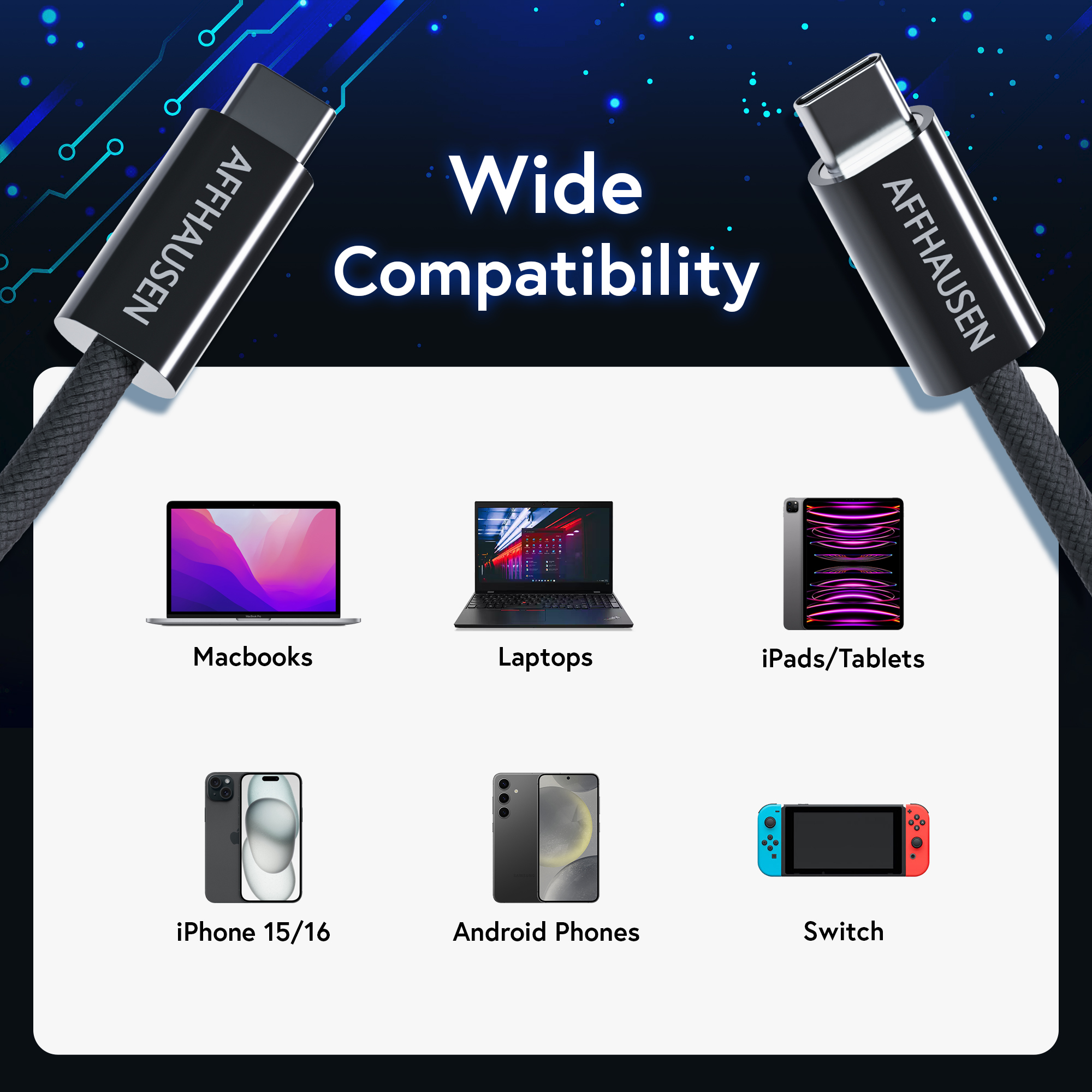 The AFFHAUSEN USB-C 240W Charge Cable in Braided Finish is