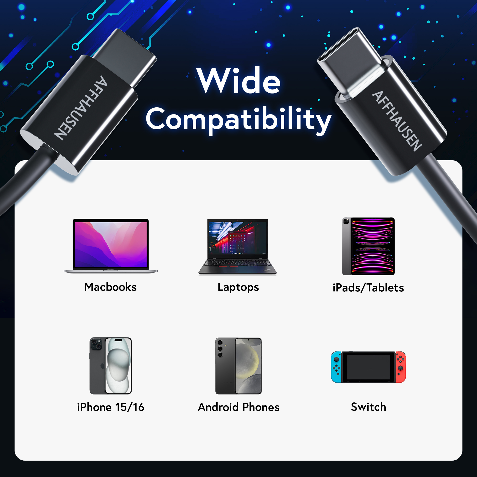 Compatibility : Laptops, tablets, smartphones, power banks, charging adapters with USB-C/Thunderbolt ports (e.g., iPhone 15 Series, MacBook Pro/Air, iPad Pro, Samsung Galaxy, Google Pixel)