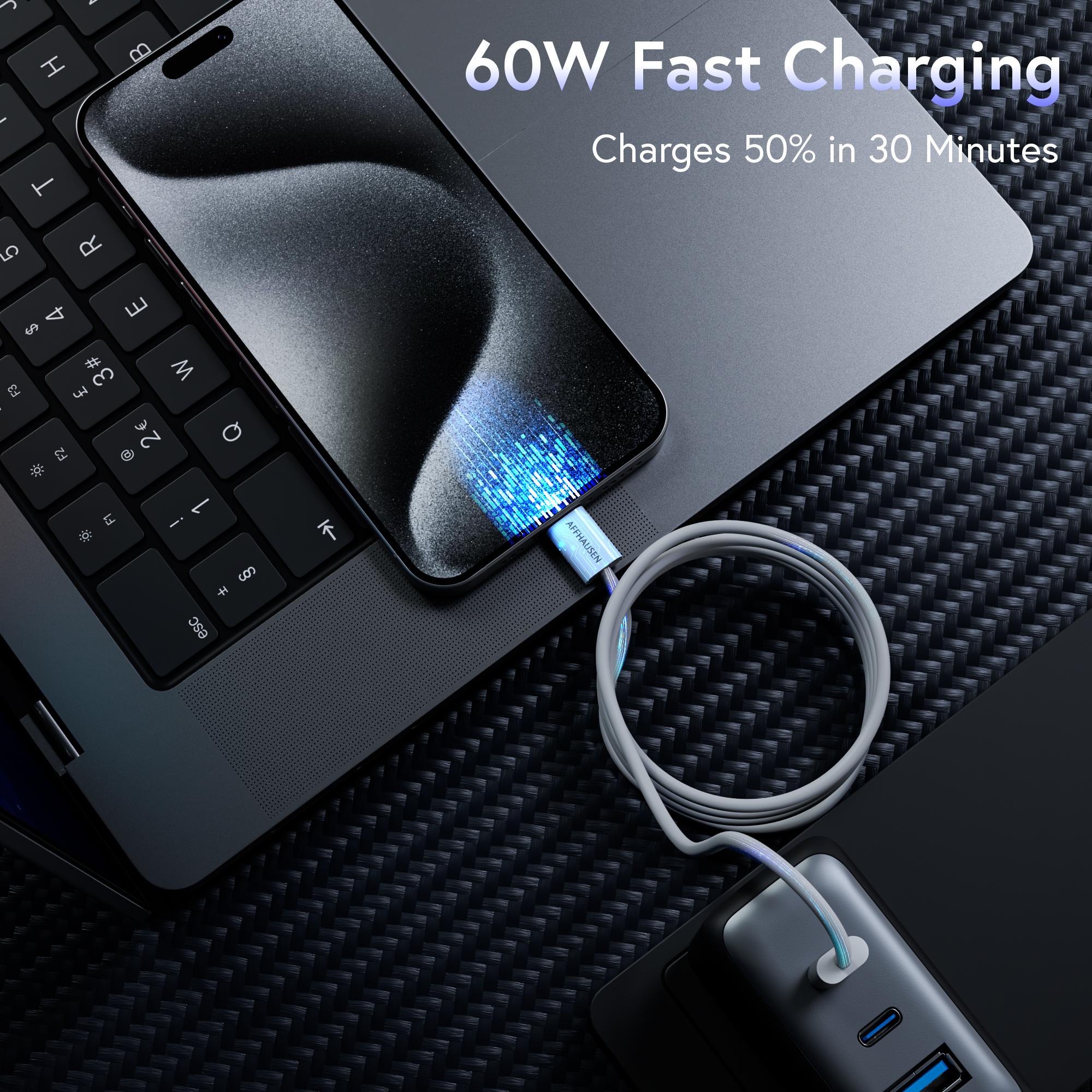 The AFFHAUSEN USB-C 60W Charge Cable, offered in a classic matte finish, is a dependable solution for charging and data transfer on USB-C devices. With up to 60W fast charging and 480Mbps data transfer speeds, this cable is ideal for powering laptops, smartphones, tablets, and more while efficiently syncing data. Its matte finish, available in black and white, along with durable ABS connectors, ensures a tangle-free and long-lasting design. Compatible with a broad range of USB-C and Thunderbolt devices, including the iPhone 15 Series, MacBook Pro/Air, iPad Pro, Samsung Galaxy, and Google Pixel, this cable provides consistent performance. FCC, CE, and RoHS certifications ensure safety and eco-friendly quality, making it an excellent choice for everyday use.